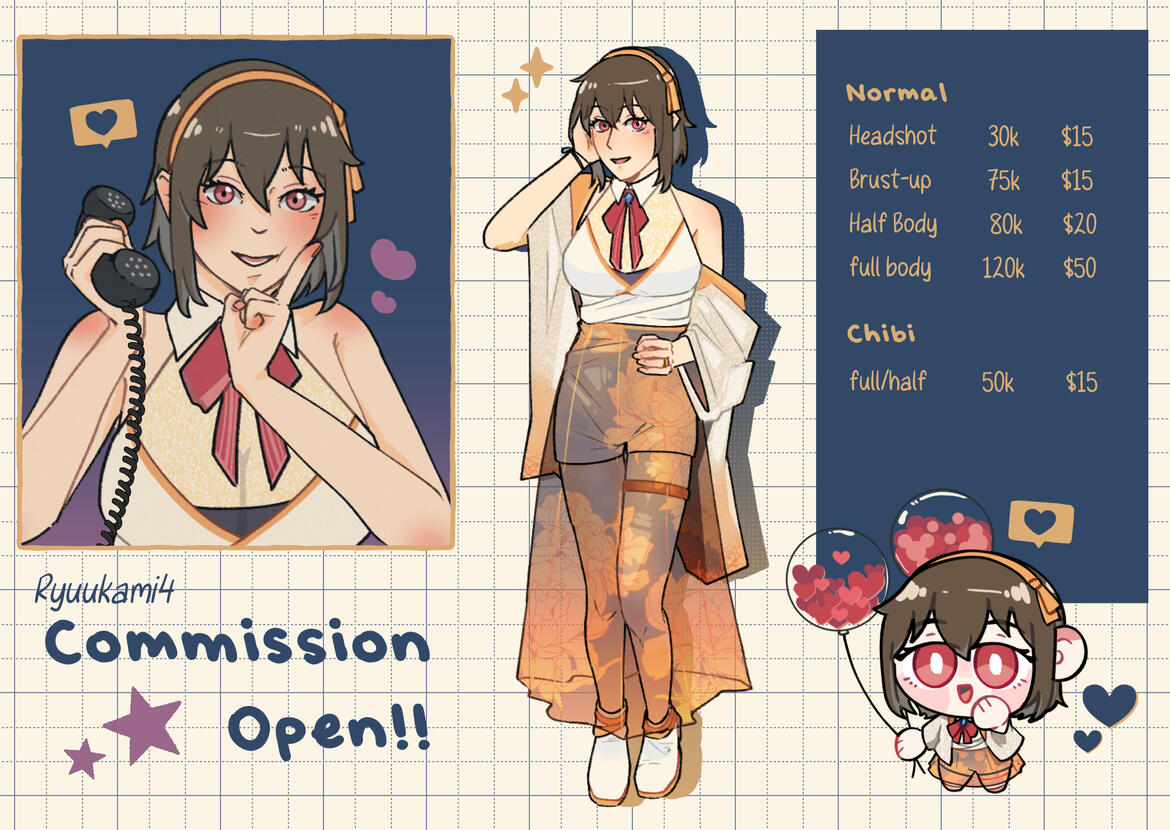 Commision Type : (ex; Head Potrait, Halfbody, knee-up Couple etc)